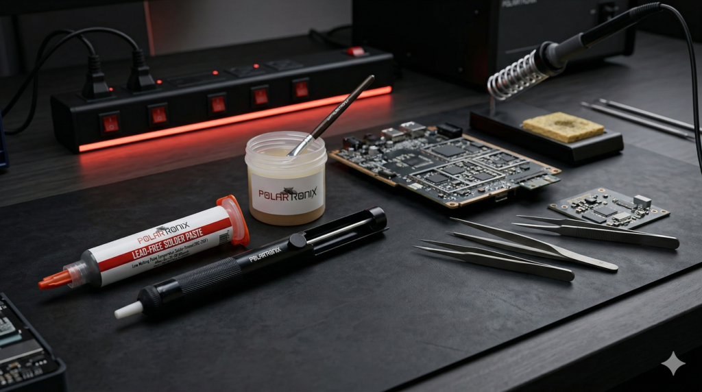 Explore PolarTronix soldering materials and tools designed for precision electronics repair, cleaner rework, and dependable bench performance.